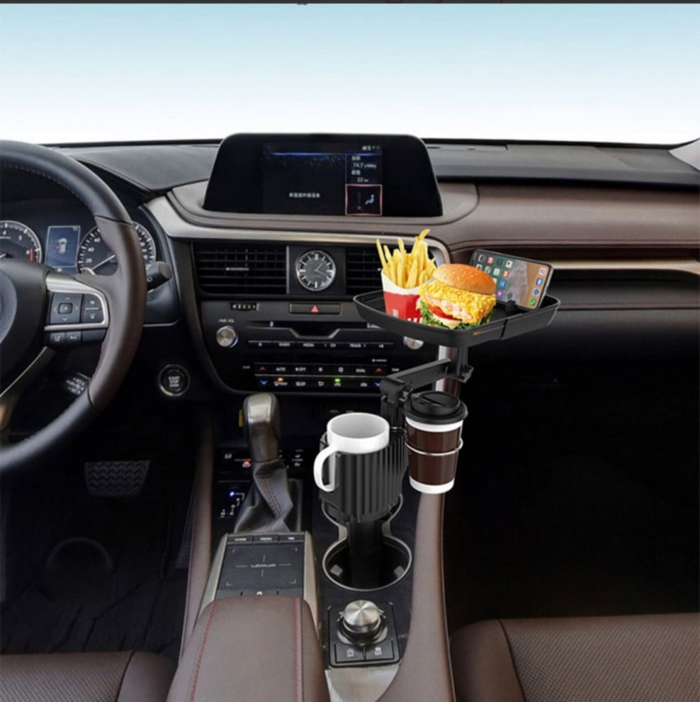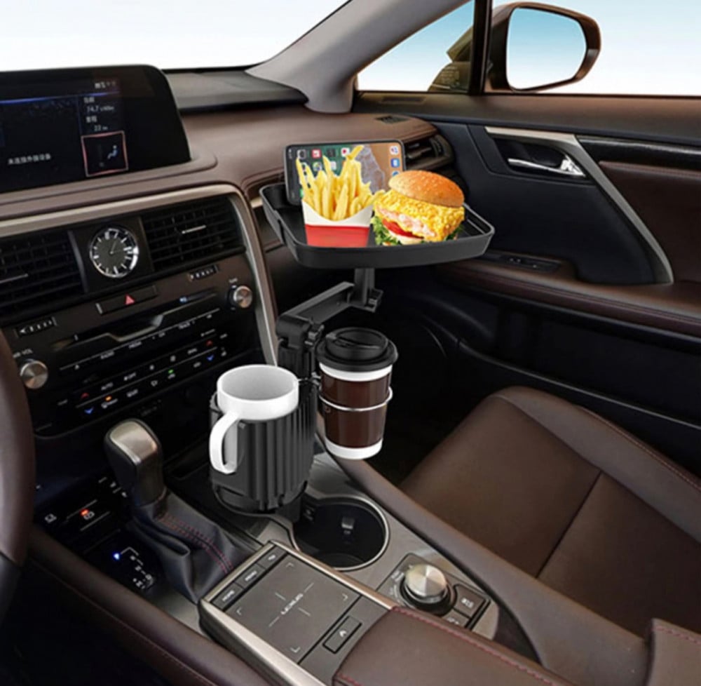 حامل أكواب للسيارة Car Cup Holder With Food Tray مع صينية طعام ، ستمكنك من حمل كوبين بالاضافة الى صينيه لحمل الطعام و مكان لتثبيت الهاتف حتى تستطيع مشاهدة فلمك المفضل أثناء الأكل