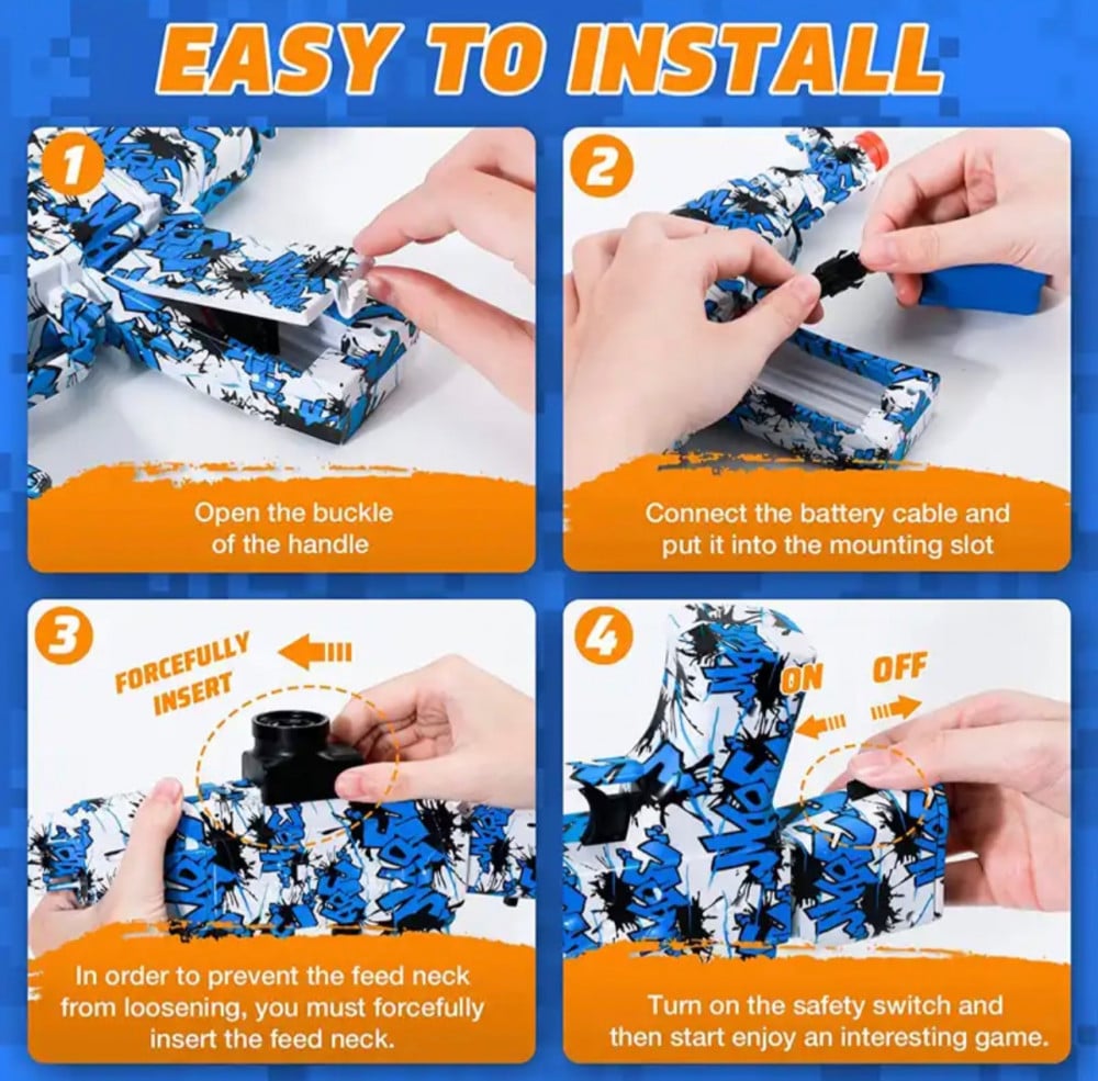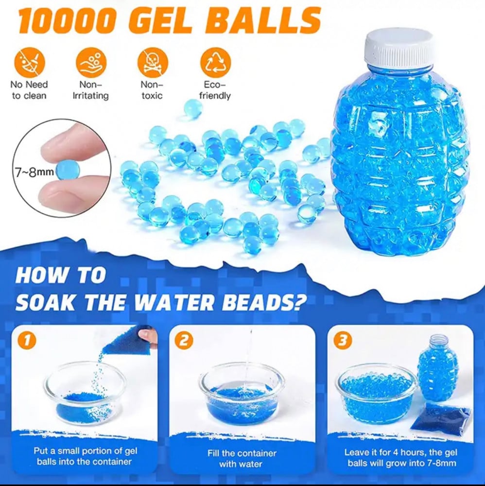 - حبات الماء غير سامة وآمنة على الأطفال 100% تتحطم تلقائيًا بعد الاصطدام، تختفي تماماً بعد ان تجف لا حاجة للتنظيف، لاملابس متسخة.