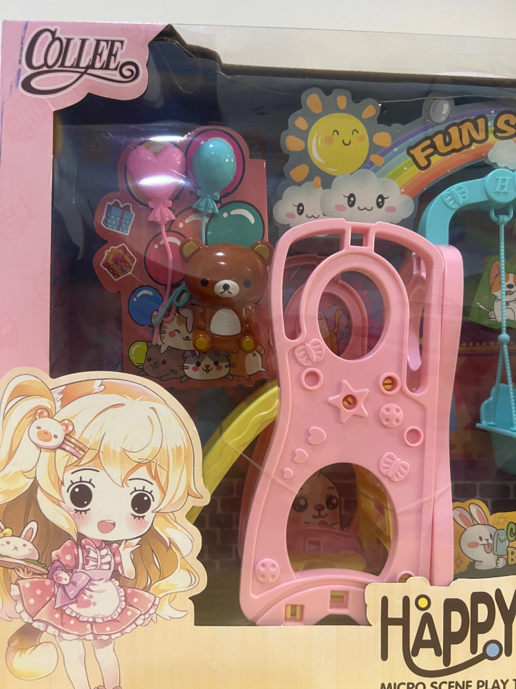 لعبه دميه جميله انيقه و فخمهتصلح للعب او كمنظره و تحفهيجي معاها مرجيه و زحليقه و انوار و إضاءهدب صغير وبالونات صغيره